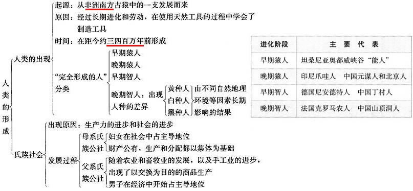 原始社会 | 距今约70-20万年前 | 北京人 | 北京西南周口店山洞里 | 打造石器,会用天然火,会保存火种,群居,身体还有猿的特征. | |||