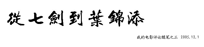 暴力武侠之美是徐克的风格,血腥中可以看到出生越南的他在作品中所塑造的人物形象及鲜明性格,风格的大手笔与武打动作的演绎.《七剑》虽然不能给予我很高的享受,但某些镜头的剪辑和场景还是可以推敲的,黎明的表演很是到位,甄子丹也一如既往的反叛与凶狠,加上演员的复杂化(来自中国国内,香港,韩国)作品似乎比较国际化了,就像12月份要上演的《无极》一样,演员都是来自五湖四海,某些也是御用演员和最近走红的新人,比如张静初.
