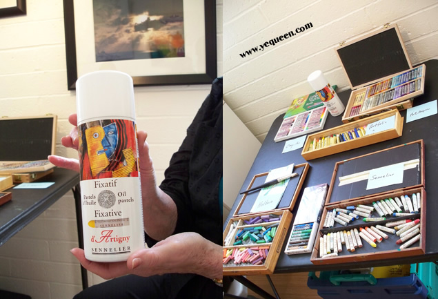 厂家不同,油画棒的性能不同,凯思林举着一种油画棒定彩器说明这种工艺的用法。 |