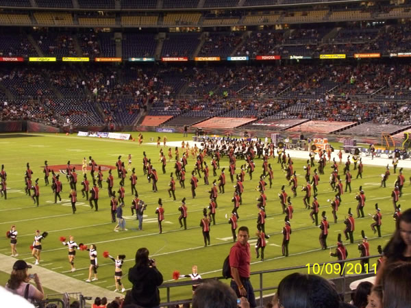 拉拉队来了。(类似足球宝贝,篮球宝贝,不过美国橄榄球宝贝的地位是运动场上最高的。)