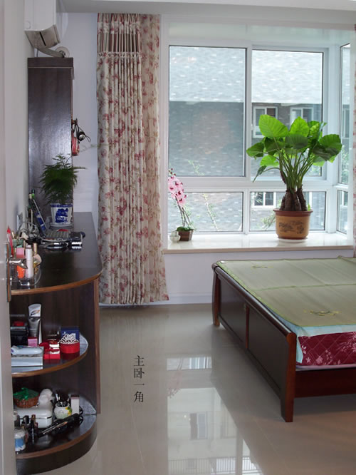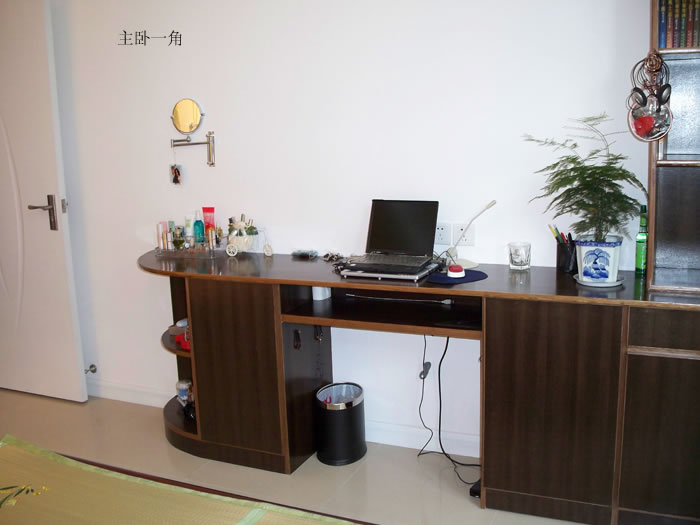 滴水观音与书台书架,化妆台等。 室内植物主要是给新装修的屋子除去苯,甲醛等有毒材料,虽然用的都是环保,但是还是安全第一。 |