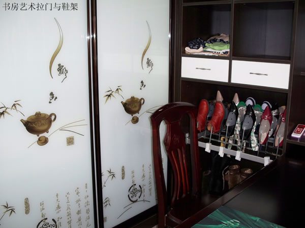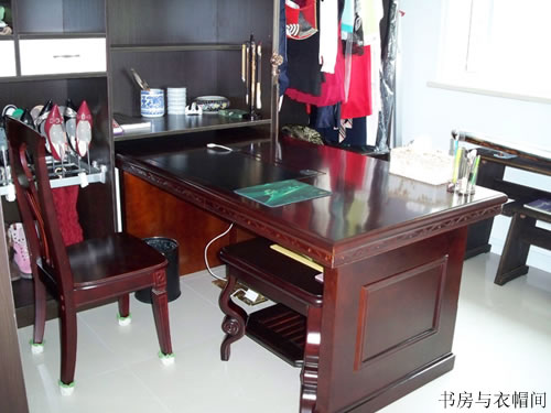 书房可以与换衣间一体,飘香移门,一半有门,一般连体为书橱,下有鞋架,女人最爱之。上面抽屉内部还是用蜂窝格,方便实用。 |