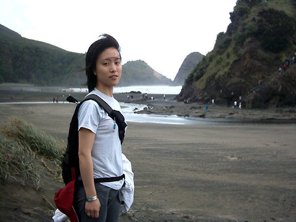 身后的背包是我从黑水涯攀岩带回的战利品,包的腰带减轻了我负荷的重量.