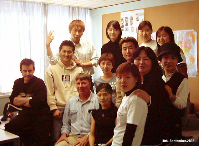 and my classmates 其中右2(日本),中1(北京的空姐),后排中间两个女生(韩国同学) 左一:西班牙 |