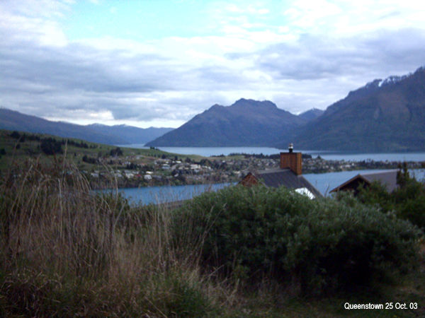 下午约5:00pm,终于来到世界顶极旅游城市Queenstown.雪山,碧水,蓝天,村落,此真值转季,Queenstown呈现出寒山转苍翠,秋水日潺湲的风情.