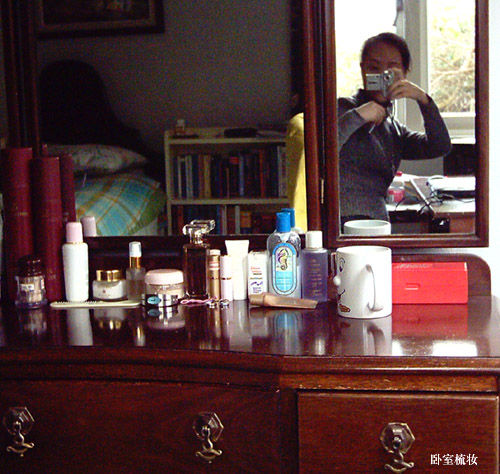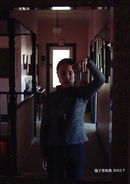 当然,总是长我几岁的朋友对我说,其实生活就是平平淡淡,其实这个道理我是很懂,仅仅是在我的内心深处,需要在平平淡淡的人生点缀起几颗璀璨的星星,在同样的情况下,女生是比男人的理想要更加大些,因为男人们压力过大的缘故都磨去了棱角,而,女人,却可以在少一些的压力下追求自己的理想. 长期的远离父母亲人,最需要的也许莫过于给他们一些自己的照片,却殊于懒惰还是别的借口,很少有机会整理照片,的确是太忙了. 于是自己拿着照相机对着镜子,给自己一个留影,也给父母一个交代吧. 三角架也找不到,本来可以自拍,一个乱字了得. 算了,罢了吧,反正镜子多,我就随便来点. (不要怪有些相片你们看不清楚,因为被我压缩过,考虑到网页的速度问题,原始照片大小够被我改动了,在不影响大效果的情况下,我已经尽量压缩和尽量保持比例了.) |