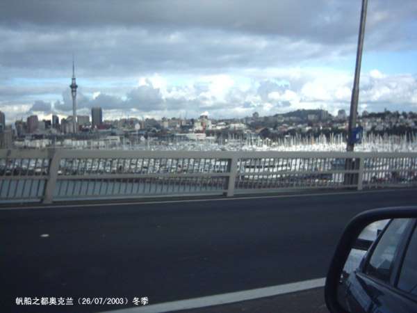怎么样?换个角度看城市,这里是殊有帆船之都之称的城市,奥克兰,Auckland. 美洲杯的比赛就在这片美丽的海滨举行. 从汽车,并且是快速行驶的过程中捕捉镜头原本就比较困难,不要对我要求太高了,马虎着看吧. |