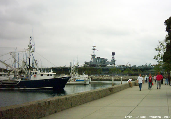 远远所见的那艘航母就是The USS Midway museum. This is a tourist attraction near downtown in Seaport Village. 飞机停在上面,你可以想像航母的大了.