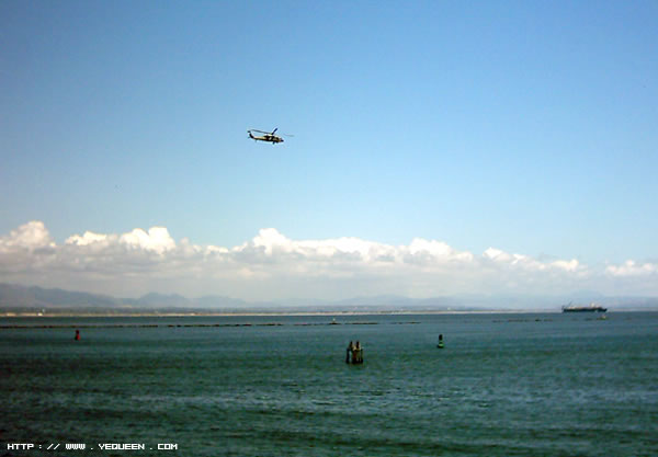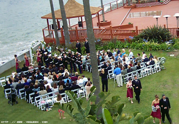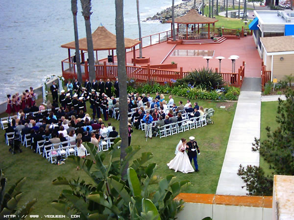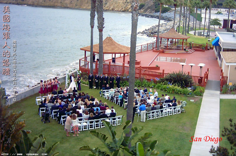 後窗出去居然看到正好有一对新人在结婚,婚礼见过不少,第一次看到海军式婚礼,赶紧顾不上休息,拿着相机爬到楼上一层平台,好取景.