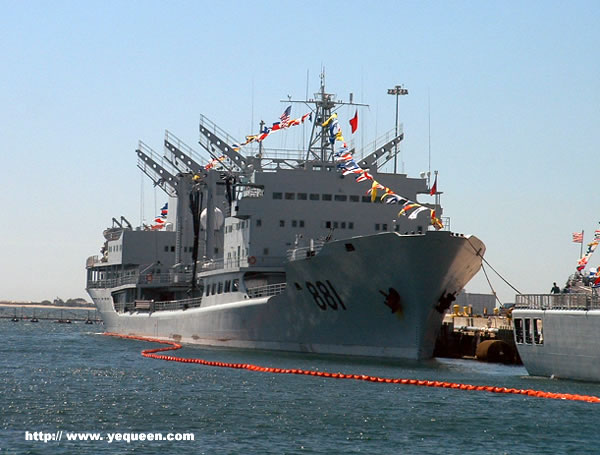 中国海军舰艇出访编队昨天美国时间2006.9.18[北京时间2006.9.19]上午10左右来到圣地亚哥军港,中国大使馆,华人华侨留学生到港迎接.