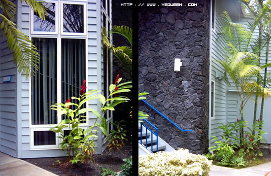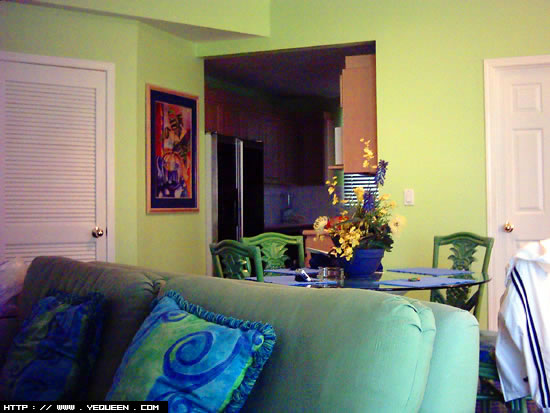 (Living room是圆形的,所以,厨房,卫生间,卧室都从这里延伸过去.)