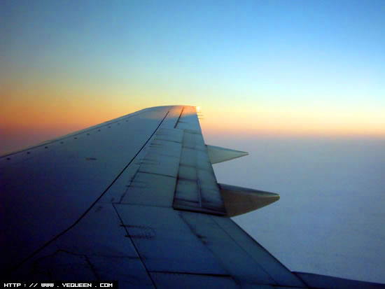 飞往洛杉矶的时候已经到了傍晚,从天上拍摄的晚霞,云层在下面. | |