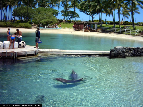 这个海豚泳池还是属于Hilton宾馆内部的.