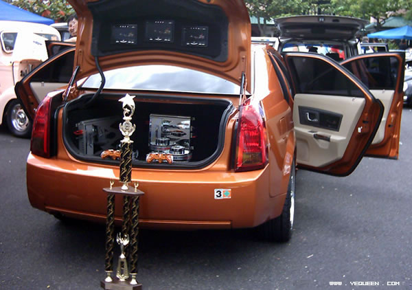 这是哪年的状元?车后盖打开居然是电影与音响,真是酷到了家.