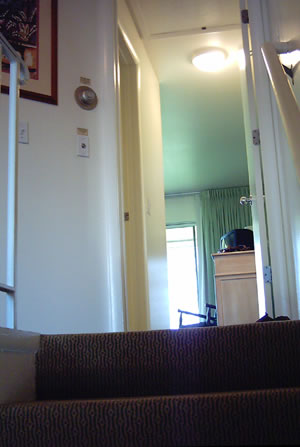 | 二楼卧室,嘿嘿,你一看就知道还是我对着镜子拍摄的,可见这房间中间的镜子多么大,二楼两间卧房,两个卫裕,两台电视.楼下还有电视和DVD.