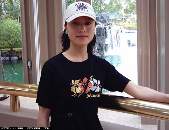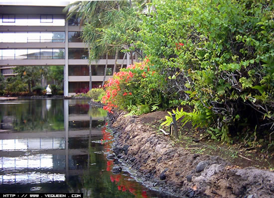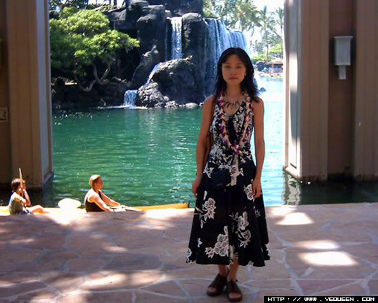 看到我身后的瀑布了吗?其实它仅仅是这个宾馆的一个游泳池之一.