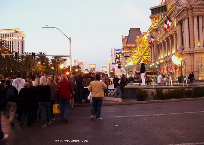 天空中一架飞往拉斯维加斯米卡兰国际机场(McCarran International Airport)的飞机刚刚路过,因为机场距离拉斯维加斯大道仅有1英里,所以拉斯维加斯所有的宾馆几乎晚上都很嘈杂,好在7:00pm好像就没有声音了,反正让我住在这里一定不会选择,偶尔来玩还不错,况且来这里旅游的人多半不会浪费夜晚美好的时光,都在白天睡大觉。 |