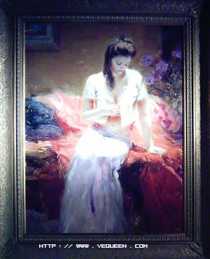 这种技术在美国也很多,由于画家很受欢迎,于是请人用高级油画布印刷,然后在上面用真实的油画颜色加色即成,效果与原作也差不多,外行一般是看不出来的,下面再讲如何辨别真伪.(量大,出产快)