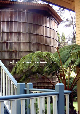 | 左图是后院被我发现的水塔,这里的饮用水是象中国一样的矿泉水桶.