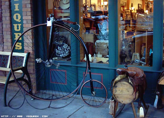 小城商业街无奇不有,这样的自行车真算是古董级别的稀罕玩意了.