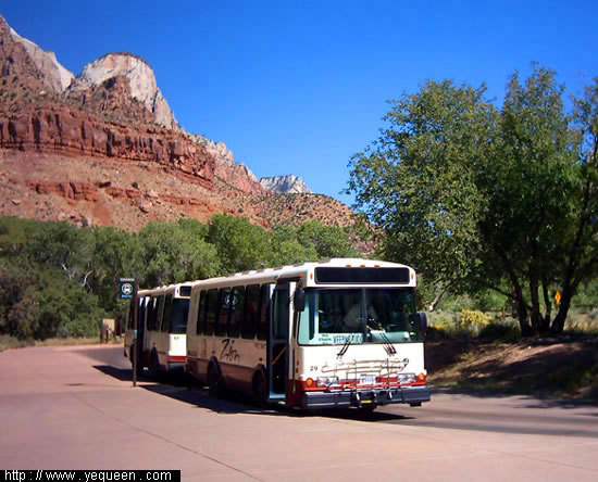 从去年开始,Zion不允许自己开车上山了,所以,大家都在这里等公园公司的BUS.