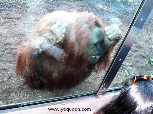 隔着玻璃要香蕉~~这个不给他还知道挪地方,哈,好聪明。