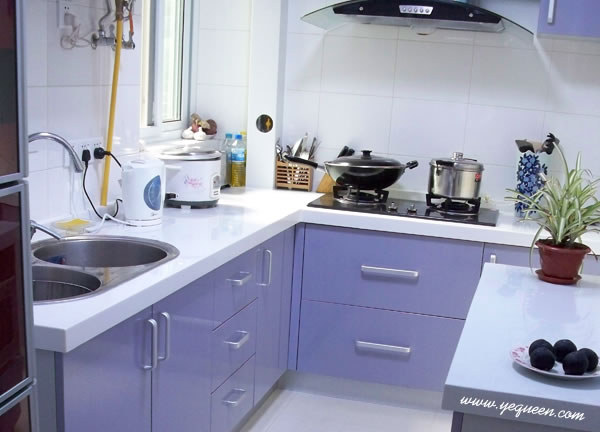 终于说服父母把那个前面提到的黄色的小柜子扔掉,换成同样板材的烤瓷贴面板地柜和人造石的台面柜子,微波炉也被受纳进去,节约了不少可利用的空间。 看起来色调统一舒服多了。 |