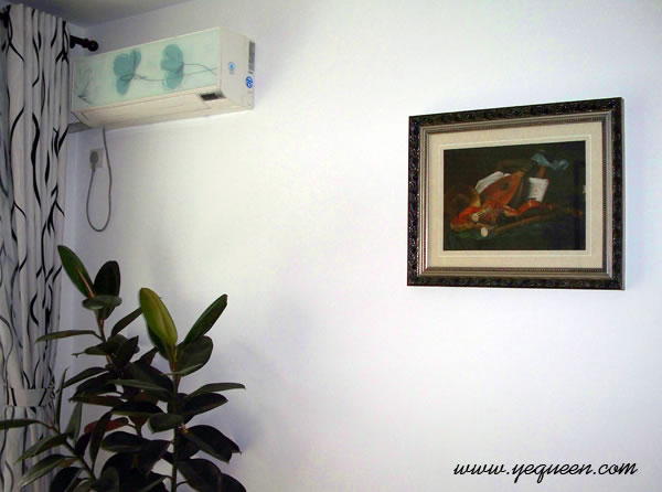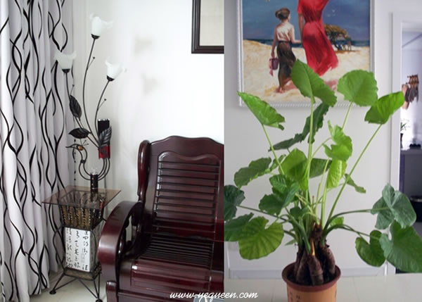 客厅的“滴水观音”长得真快,因为朋友都说“滴水观音”有毒,于是从卧室搬到客厅,由于不接受阳光的直射,叶子就不会横向生长,而是往上冒,这才几天,个头蹿得真快! 买了一个电话与古典灯饰一体的茶几,备用电话所需。 |
