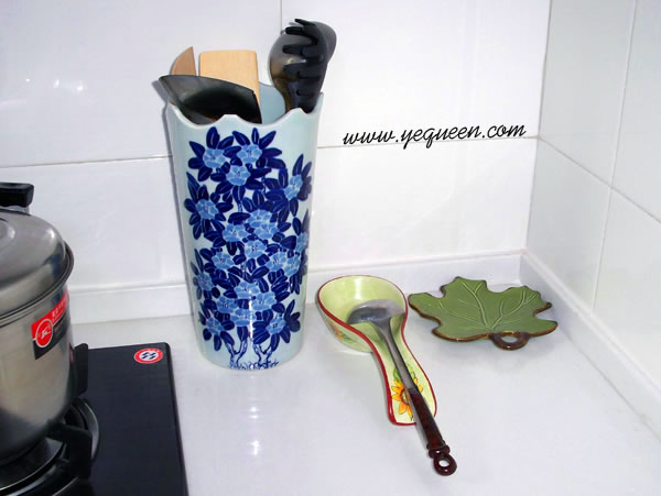 厨房一角细节介绍。 用瓷瓶放铲子大勺子是美国人的习惯,但是一般他们选用的是普通的大口罐子,用艺术瓷器来点缀这里,更加方便和美观。 右侧两个放大勺子的摆俱也是美国人的习惯,因为美国人不会用手去洗碗,所以连同炒菜的勺子和被隔放的瓷器都会被一同放进洗碗机进行清洗和自动烘干。 这两件小饰物是我从美国带回来的,奇怪的是:都是MADE IN CHINA,却在中国国内市场很难找寻,很多轻工业品都是中国人制造的,可惜国内的质量就是比不上同样是中国人制造的出口产品,悲哀。而且在国内还十分难寻! |