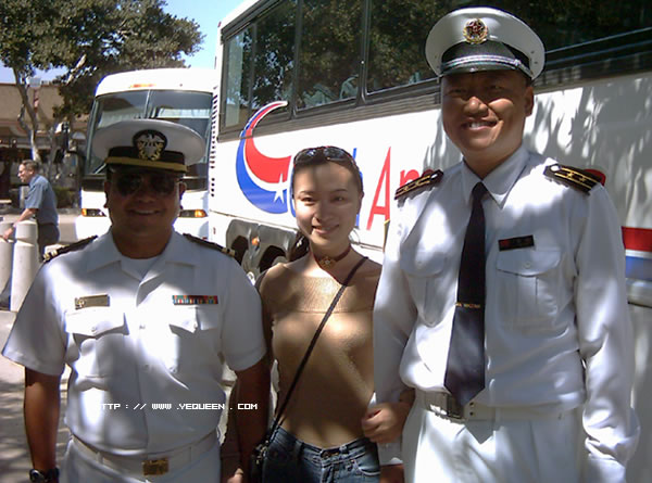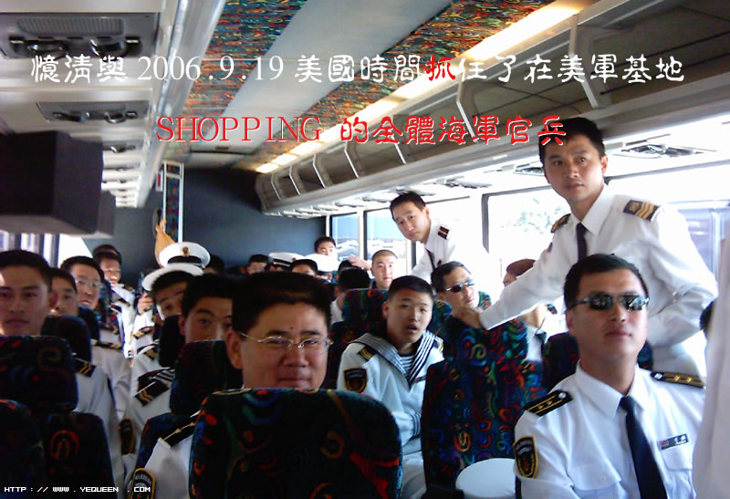 明天他们就要到加拿大了,于是今天看有没有运气抓住他们出船买东西,那边内部电话打过来,马上开车过去"抓"人.还是去了有点晚,他们已经买完东西上bus(美国海军内部bus准备回船了.热情的打个招呼,马上同意我上车拍照,运气咬~)